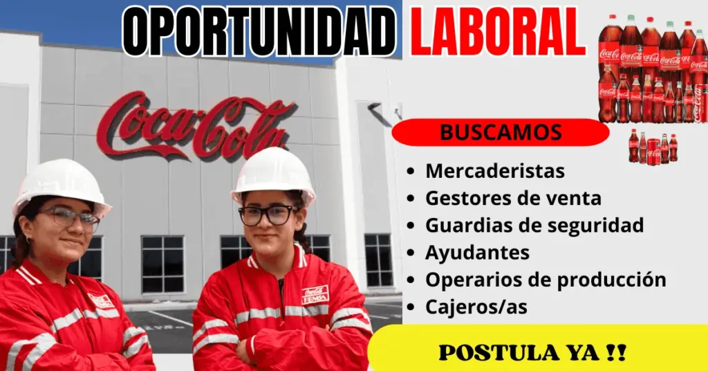 COCA-COLA ofrece vacantes como operador, chofer, auxiliar, técnico y ejecutivo, con funciones claras, requisitos accesibles y beneficios competitivos, ideales para quienes buscan estabilidad, crecimiento profesional y empleo seguro.