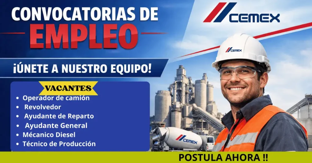 Actualmente, CEMEX, una de las empresas líderes en la industria de materiales para la construcción, continúa ampliando su equipo de trabajo en distintos países de Latinoamérica. Por esta razón, ofrece vacantes formales, estables y con excelentes beneficios laborales. A continuación, se detallan cinco oportunidades de empleo disponibles, incluyendo funciones, requisitos y ventajas para los postulantes.